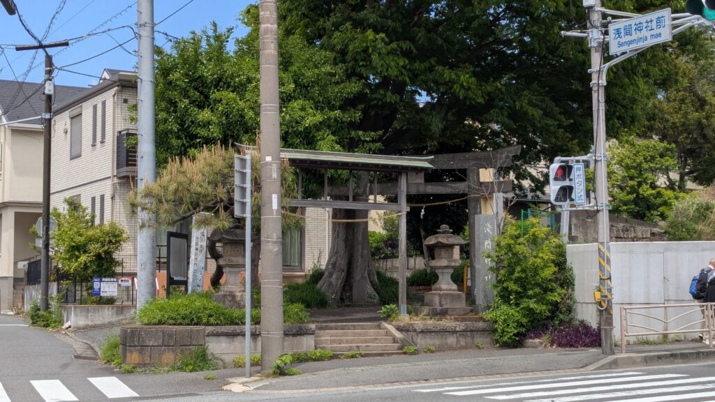 その先、浅間神社前交差点に浅間神社の鳥居があります。