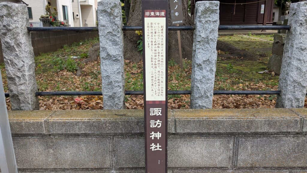 ここは戸塚宿と藤沢宿の間にあった立場だ。今では、標柱の後ろにすでに閉店した釣具店があるのみだが、昔はこの界隈にも茶屋が並び、一息つく旅人たちでにぎわったのだろう。