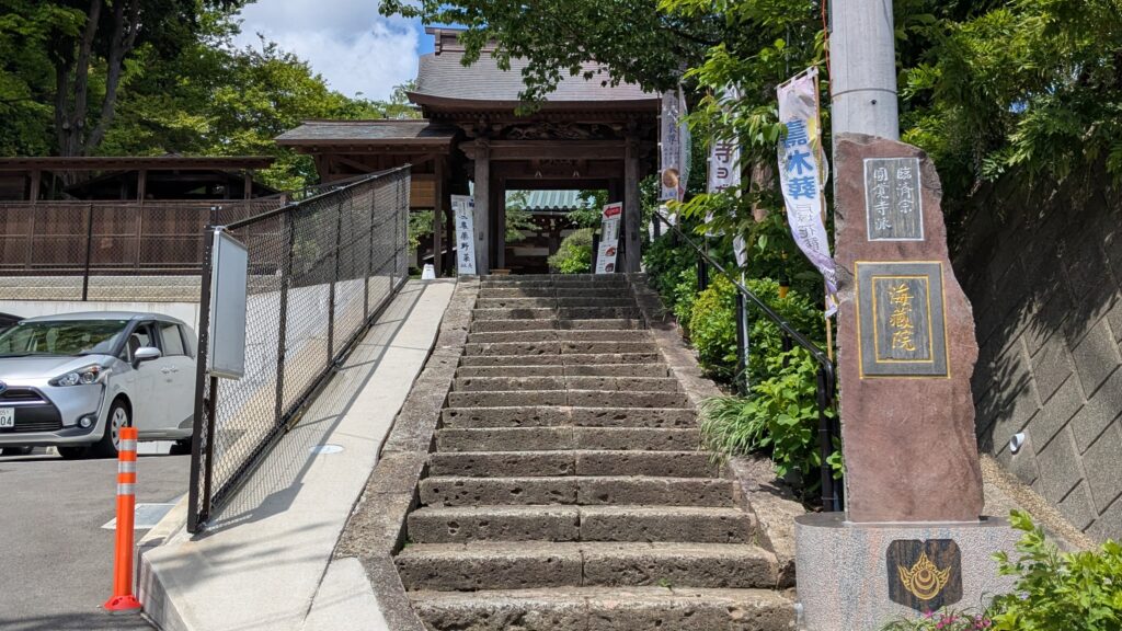 本陣から少し歩いた右手に、石段が現れます。ここは「海藏院」です。歴史は古く、創建は1363年、南北朝時代にまで遡ります。