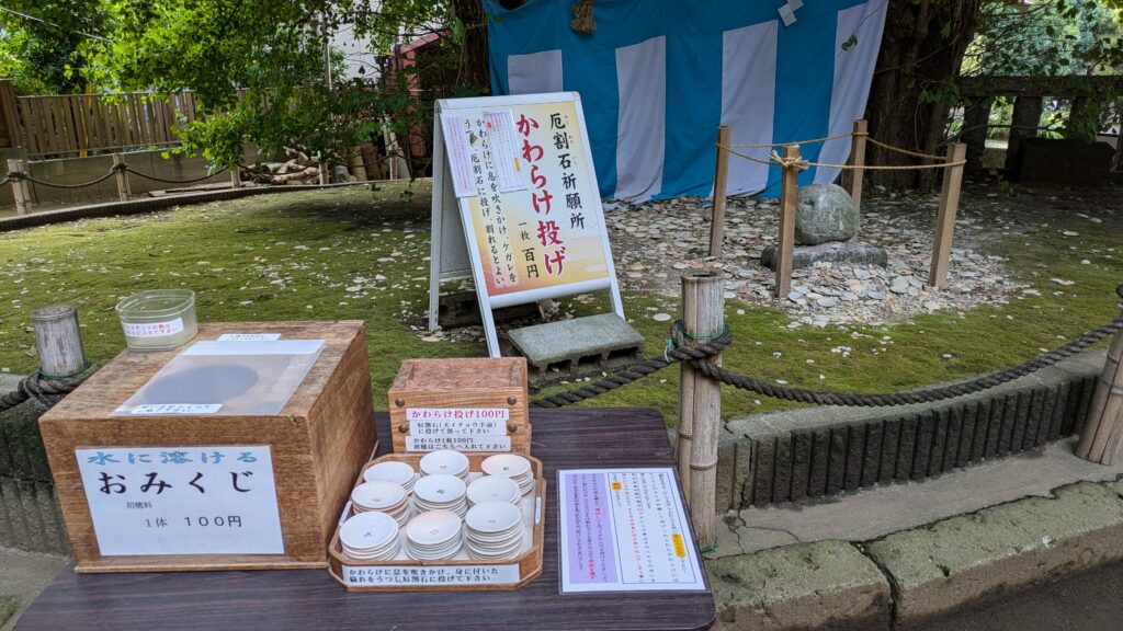 本殿の前には、厄落としの「かわらけ」が箱に収められています。