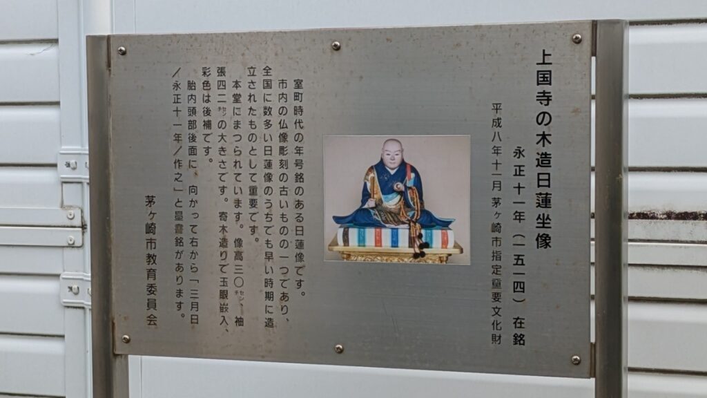 茅ヶ崎市今宿にある日蓮宗の寺院で、室町時代初期(応安年間頃)に創建された古刹です。特に、茅ヶ崎市指定重要文化財の「木造日蓮坐像」(永正11年/1514年作の銘あり)を所蔵している点が歴史的な特徴です。