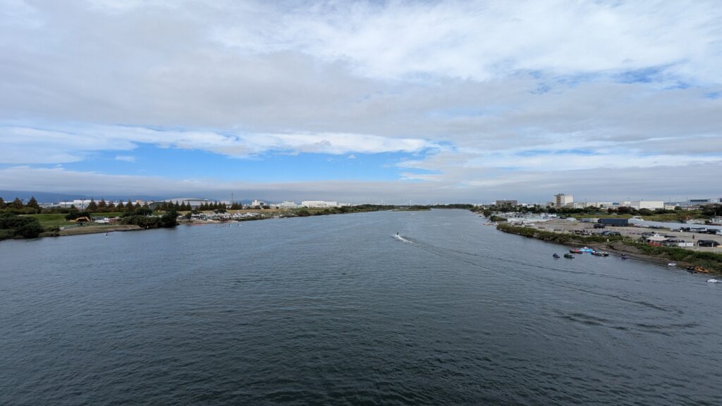 前回歩き終えた馬入橋のたもとから、いざスタート!相模川の広々とした景色を背に、平塚宿へと続く道へと足を進めます。