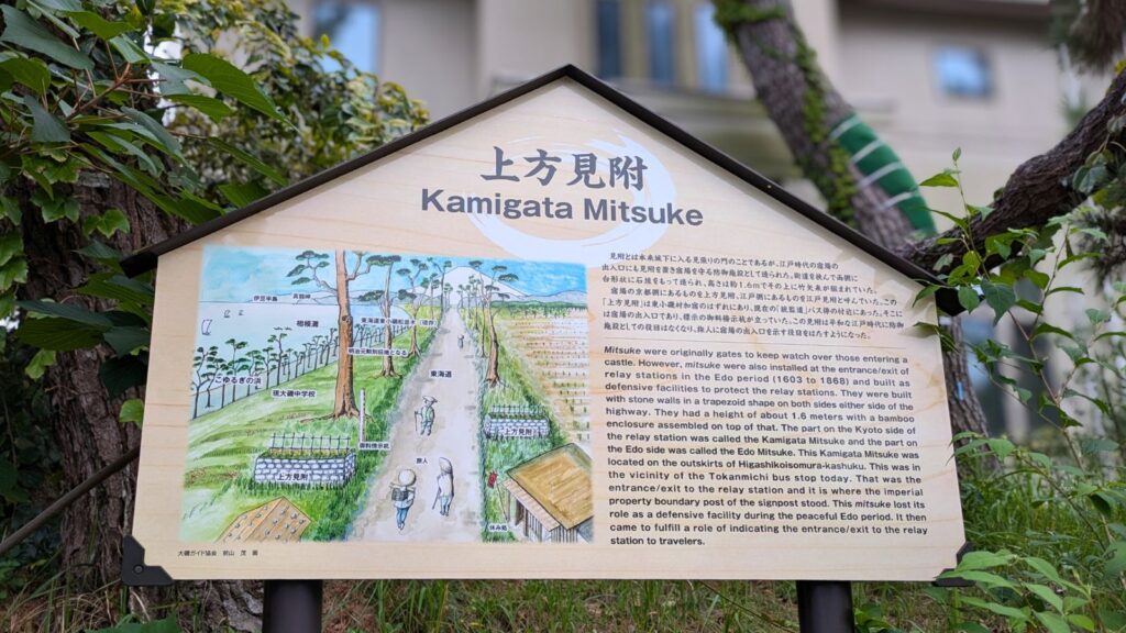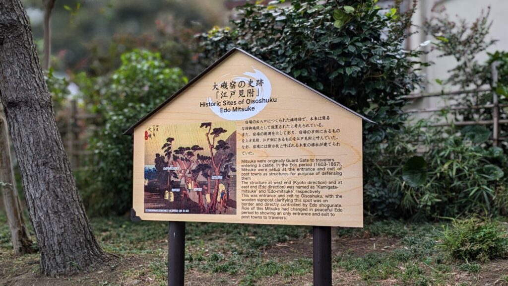 そして、今回の街道歩きの終点、大磯宿 上方見附跡に到着!京方面へ向かう旅人が大磯宿を去る、宿場の西側の境界線です。この見附跡を通過し、今日一日の歩き旅の達成感がじんわりと湧き上がってきました。