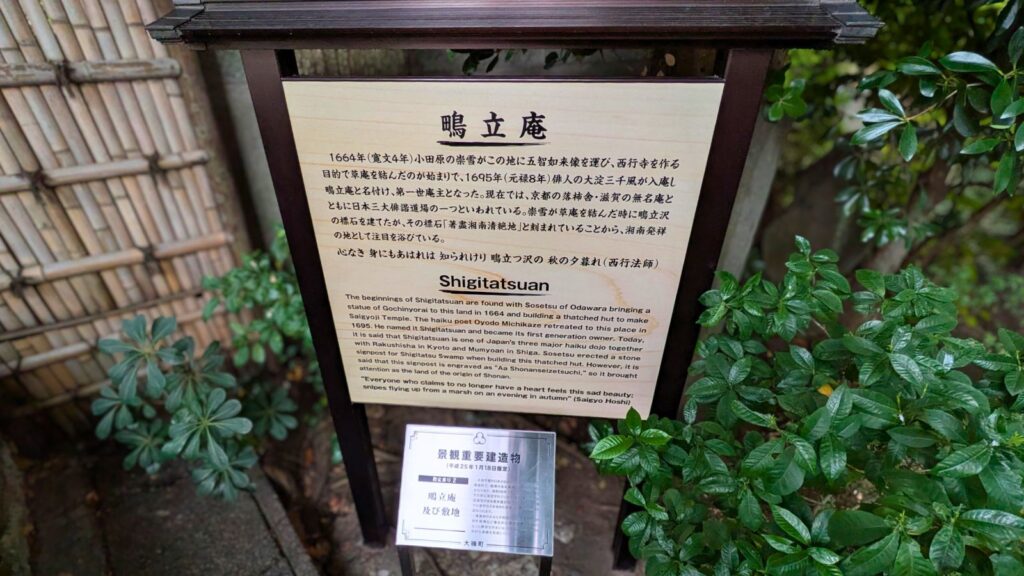 旅の終わりにふさわしい風雅な場所、鴫立庵(しぎたつあん)へ。京都の落柿舎、滋賀の無名庵と並ぶ日本三大俳諧道場の一つです。
