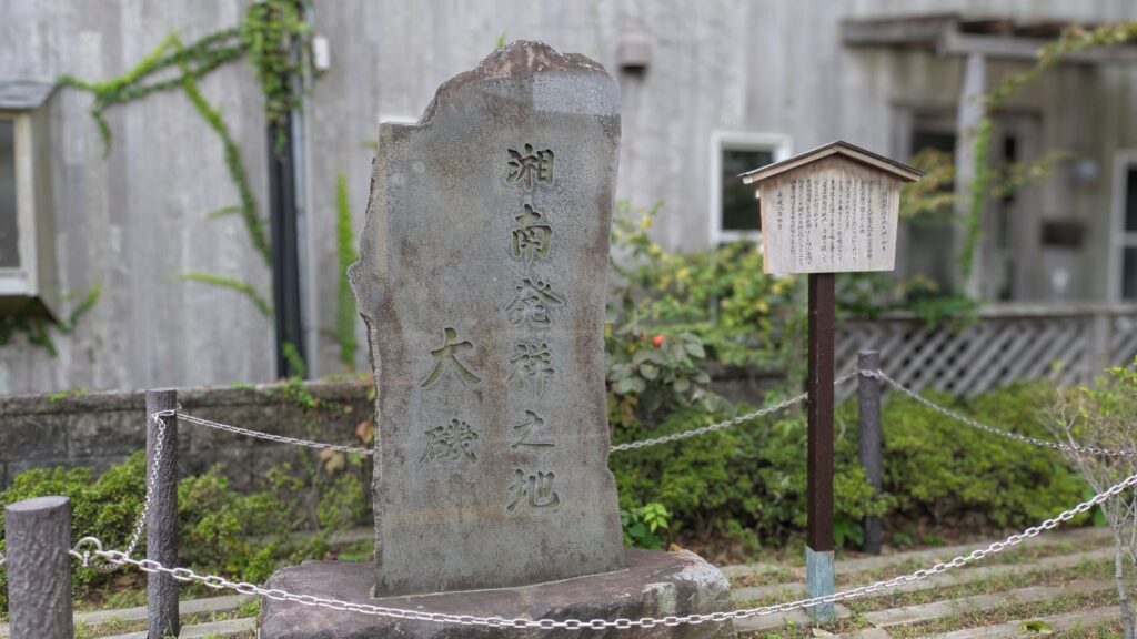 そして、道の左手には「湘南発祥之地大磯」の碑が!湘南発祥にも諸説ありますが、その一説、鴫立庵の標石に刻まれた言葉がルーツとなり、私たちが今「湘南」と呼ぶこの地域が、大磯から始まったことを知ると、感慨深いです。