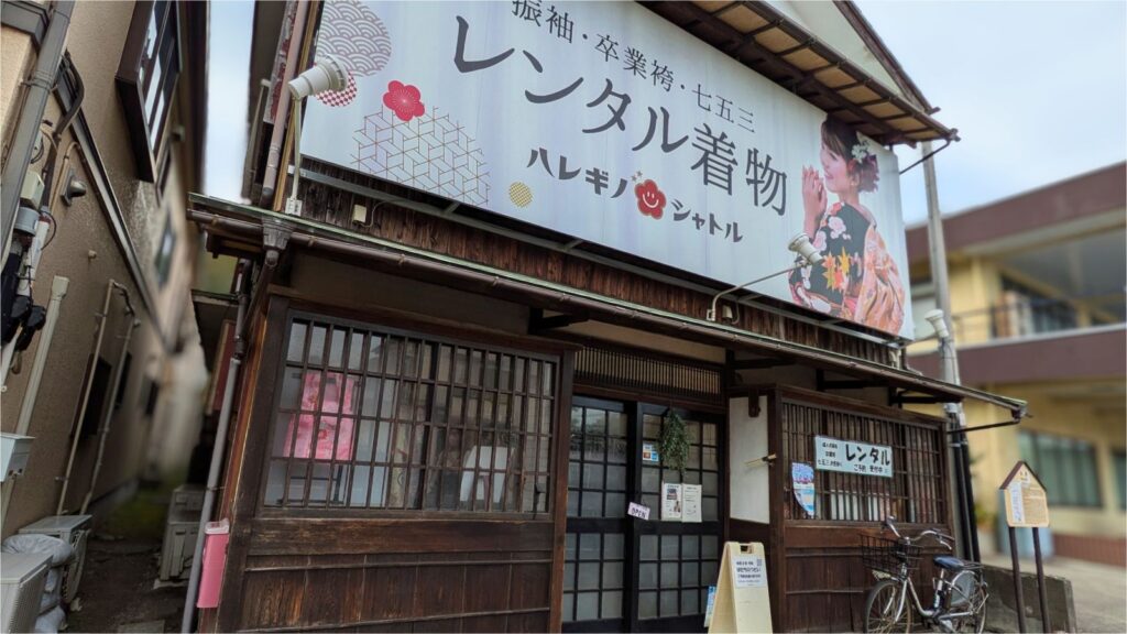 本陣跡にはレンタル着物が。歴史と現代が交差する面白さがあります。