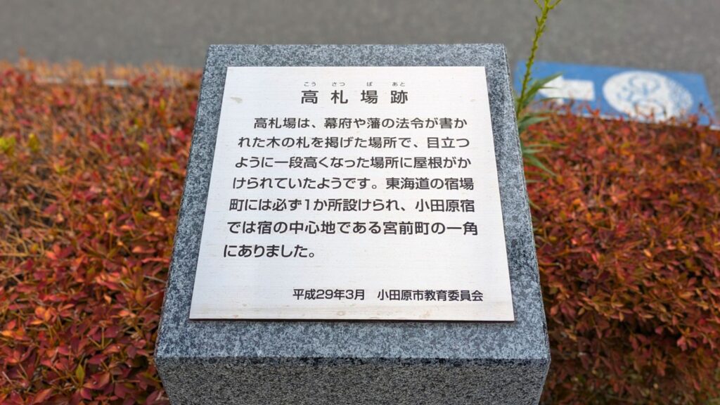 幕府からの法度や掟書きが掲げられた、今でいう「公的掲示板」の跡地です。旅人や住民はここで最新のルールを確認していました。人だかりができていたであろうこの場所跡に立つと、江戸時代の情報伝達の様子が目に浮かびます。