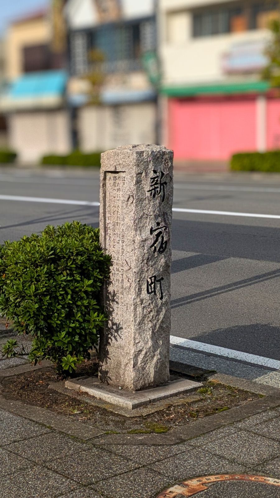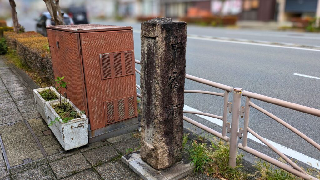 その先に進むと「中宿町」に入ります。宿場の真ん中に位置することから名付けられました。旅籠や商店が密集し、旅人たちが旅の疲れを癒やしたエリアです。石碑一つにも、旅人をもてなしてきた歴史が刻まれています。