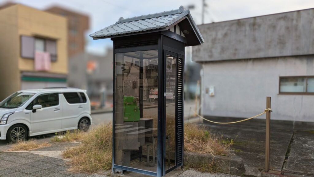 道端で見つけた瓦屋根の電話ボックスも、城下町らしいお洒落なこだわりを感じて、ついついシャッターを切ってしまいました。