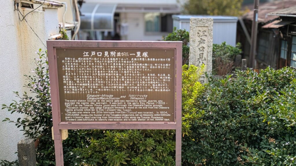 江戸見附前にある歩道橋を渡ったところに「小田原山王原一里塚」があります。