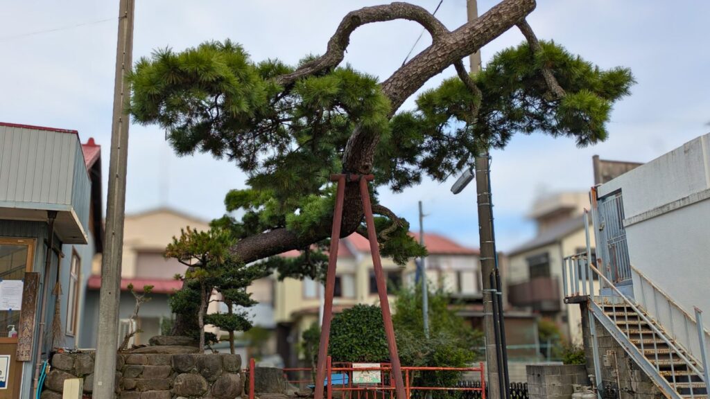 ここからがいよいよ、東海道でも最大級の賑わいを誇った小田原宿のエリア。昨日は暗くて気づかなかったのですが、案内板の後ろには立派な松が!支柱に支えられながらも堂々と枝を広げる姿は、まるで見守り役のようですね。