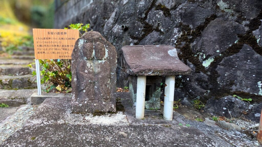 今はもう茶屋はありませんが、「仲の茶屋」という名前から、かつてここで旅人がお茶を飲んで休憩していた光景が浮かびます。小さな石祠の道祖神が、往時の賑わいを静かに伝えています。