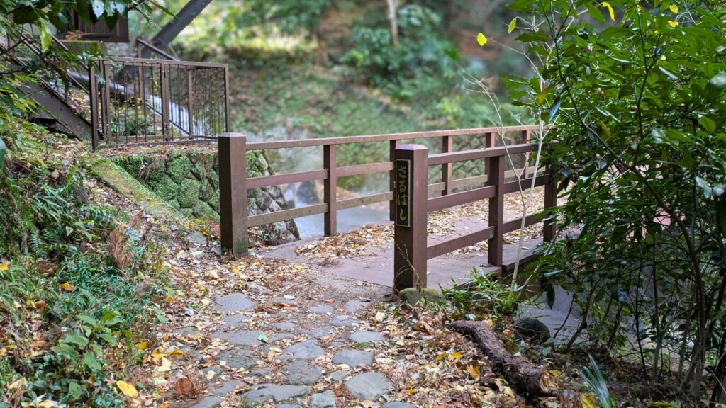 その先の谷に架かる「さるはし」です。現在はコンクリートの橋になっていますが、昔は猿しか渡れないような危うい橋だったとか、猿が遊んでいたからとか、名前の由来を聞くだけで山深さが想像できますね。