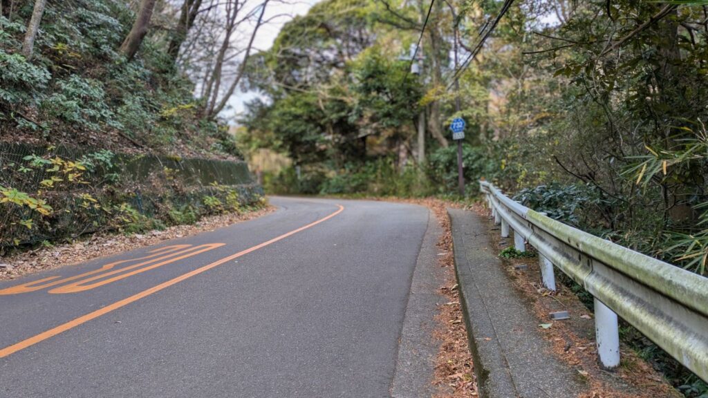 ここから石畳の道が一旦途切れて、少しの間歩道のない車道を進むことになります。交通量は少ないですが、下ってくる車のスピードが速いので危険を感じます。