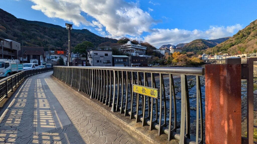 スタート直後、早川にかかる三枚橋を渡ると、いよいよここからが「箱根路東坂」の本番です。江戸時代にはここに板橋がかかっており、馬子たちが客を奪い合ったという逸話も残る場所。橋の下を流れる早川の轟音を聞きながら、これから挑む標高差約800mの山道へ向けて靴紐を締め直します。ここを越えれば、もう後戻りはできません!