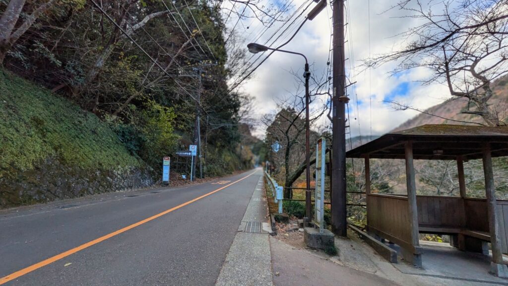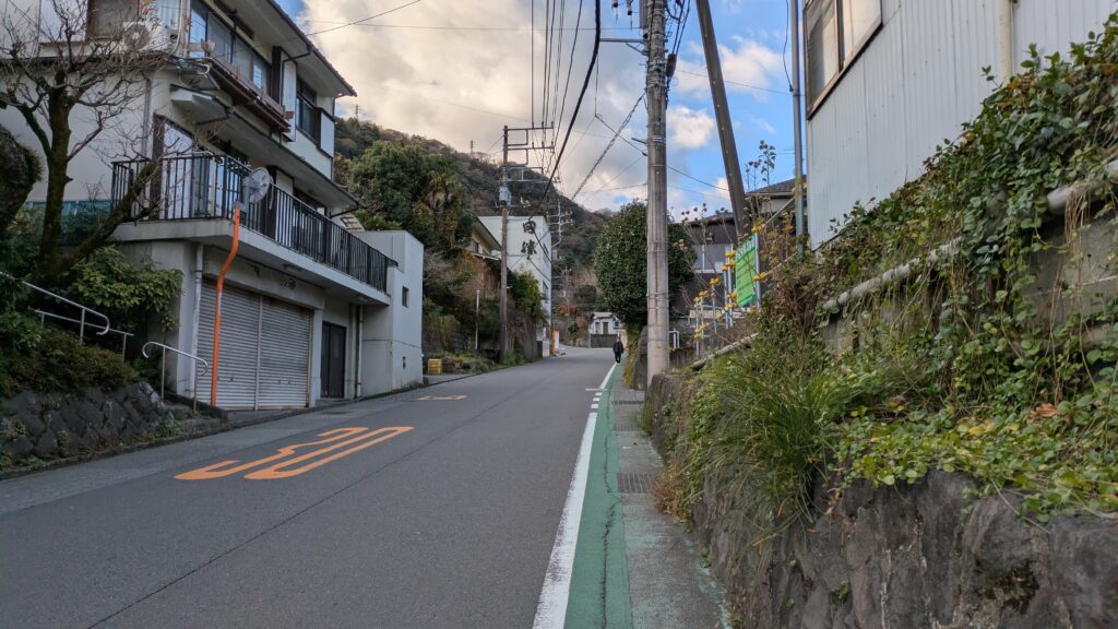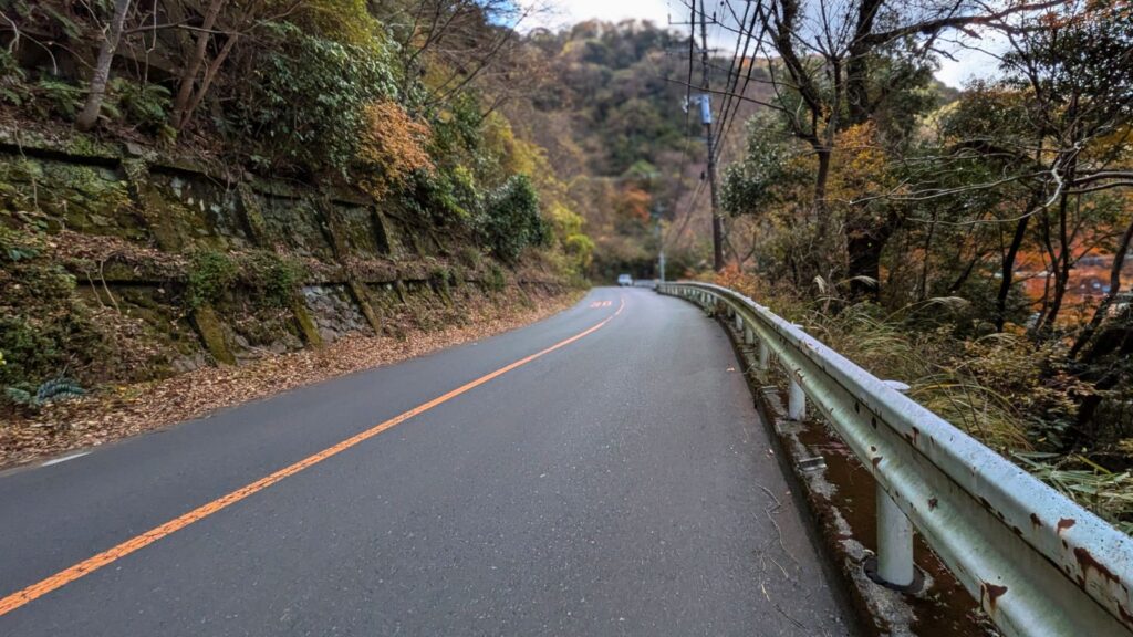 ここから石畳の道が一旦途切れて、少しの間歩道のない車道を進むことになります。交通量は少ないですが、下ってくる車のスピードが速いので危険を感じます。