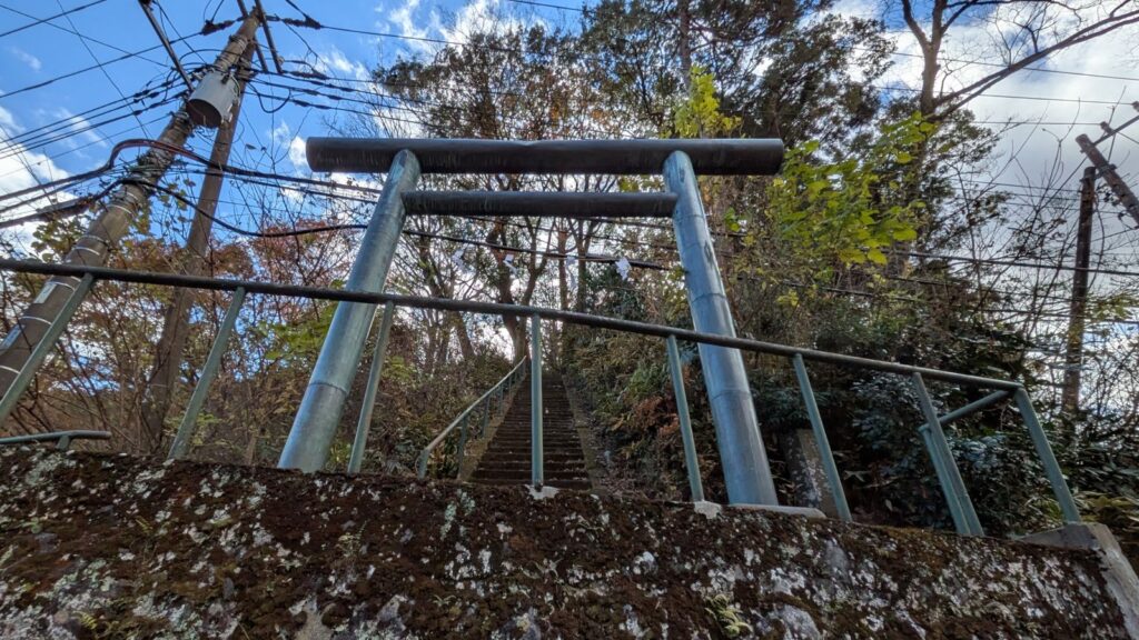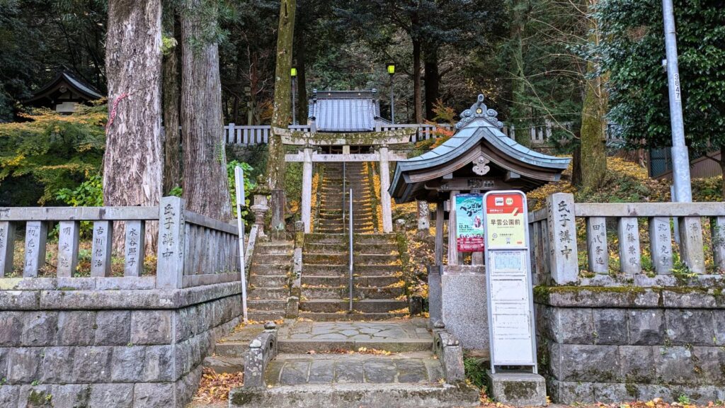 箱根旧街道沿いの「須雲川集落」の鎮守です。鳥居の向こうの階段は…登りません!今回は体力温存で見上げるだけにしておきました。須雲川集落を見下ろす高台にひっそりと鎮座しています。