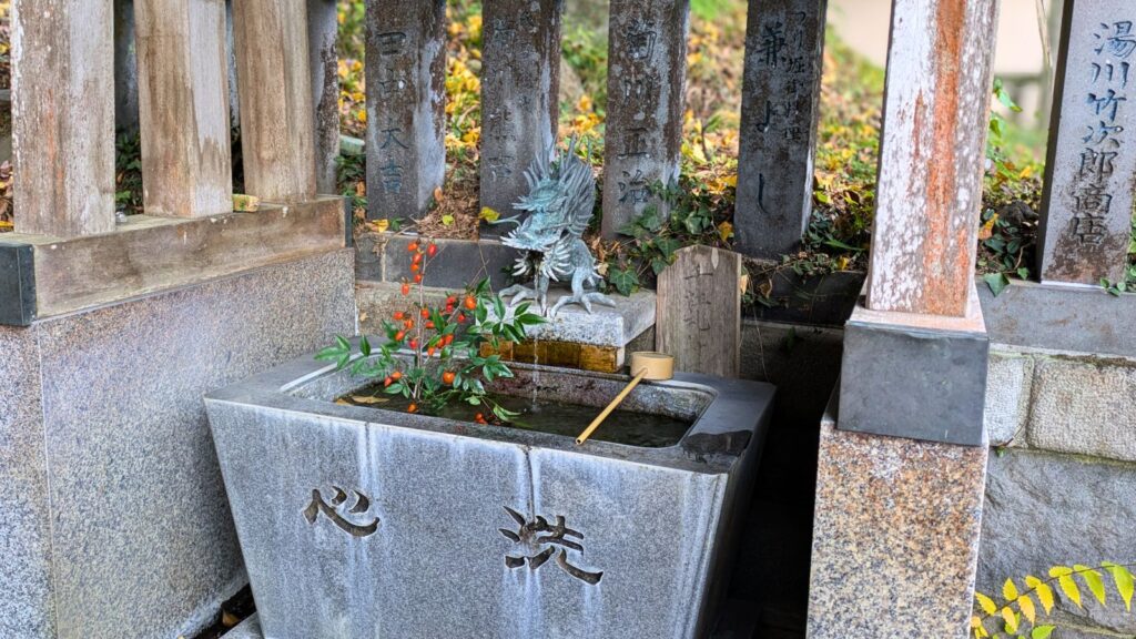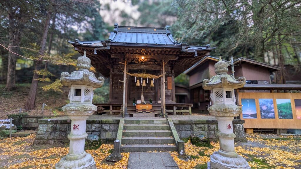 湯本村、湯本茶屋村の鎮守として地域に根付く神社です。階段の手前の手水舎からは「白山水」と呼ばれる御神水が湧き出ています。清らかな水で手を清めるだけで、身が引き締まる思いです。