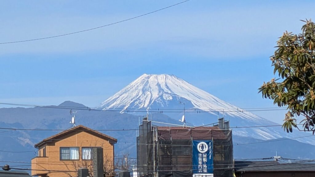 このあたりで、ふと顔を上げると、青空にくっきりと美しい富士山が見えました。街道歩きの疲れも吹き飛びますね。