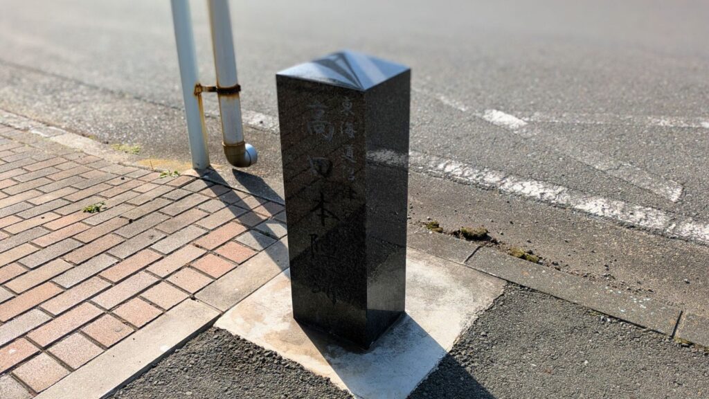 さらに進むと、富士隠れ坂の付近で小さな石碑を発見!「東海道駿府へ十五里碑」です。江戸からの距離ではなく、「駿府(現在の静岡市)まであと十五里(約60km)」を示す珍しい道標。