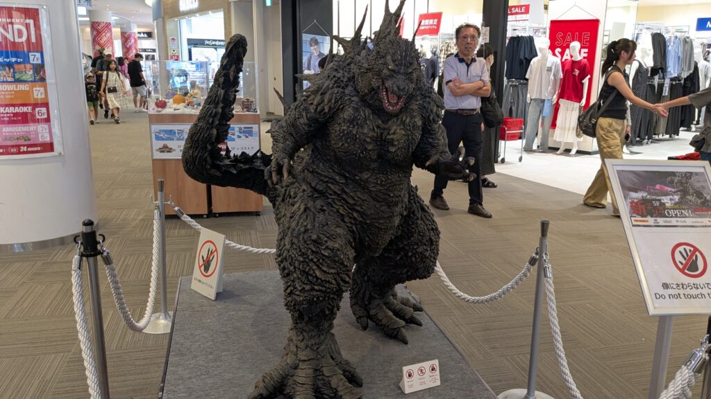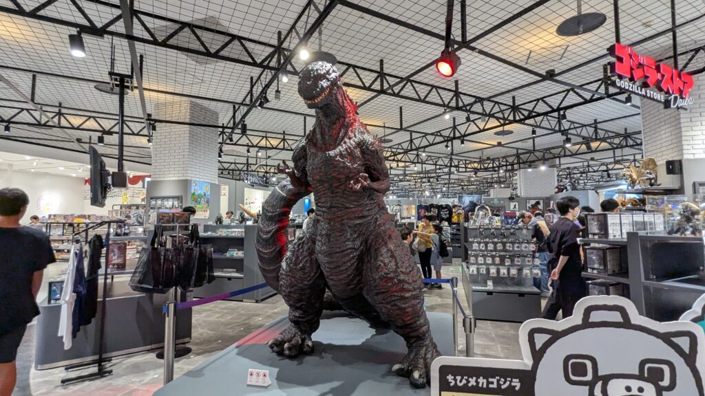 ゴジラも黙ってはいません。3階の台場駅ゲート付近には1mのゴジラ立像、5階にあるは「ゴジラストア」前には2mのシン・ゴジラ巨大立像があります。