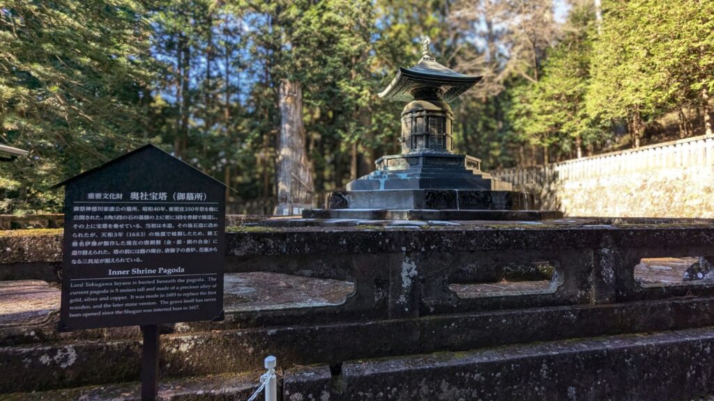 奥社にある宝塔は、徳川家康公の墓所が納められた場所で、日光東照宮の中でも最も高い標高に位置しています。