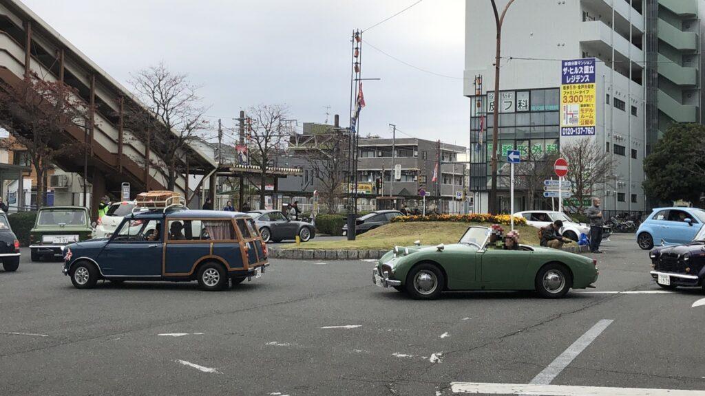 この日は神社敷地のみならず、旧車が隊列を組んで国立市内を走ります。