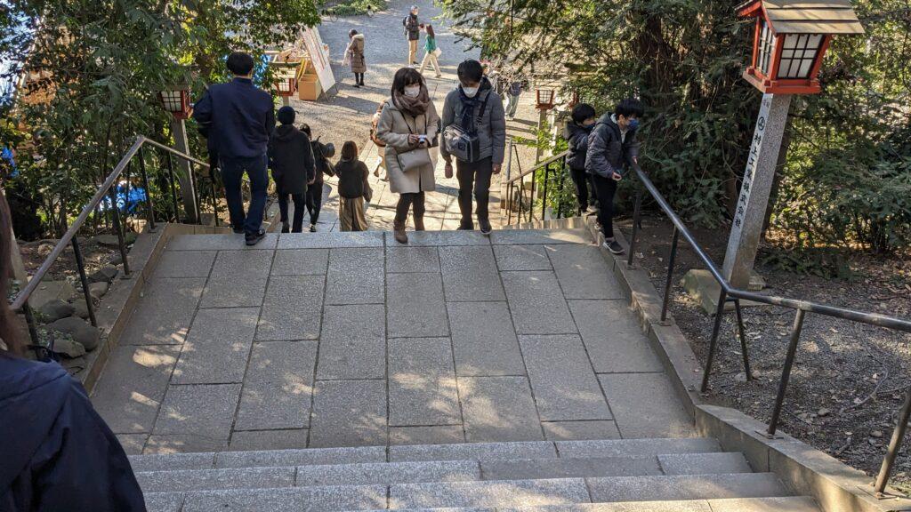 二の鳥居の左手に手水舎があります。その先に更に下りの階段が続きます。
