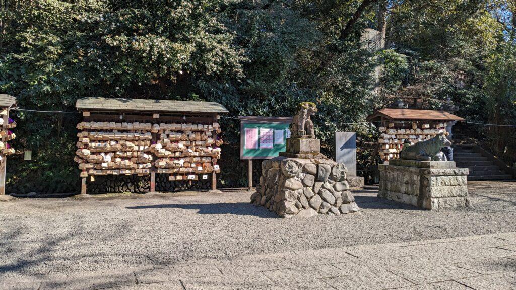 拝殿の右手、絵馬がびっしりと掛けられていました。